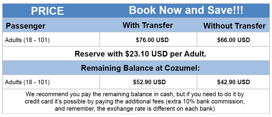 - For guests staying in the Northern hotel zone or downtown of Cozumel