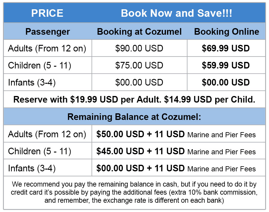 - Your host will equip you with your new snorkel tube, courtesy of us at Safe Tours Cozumel.