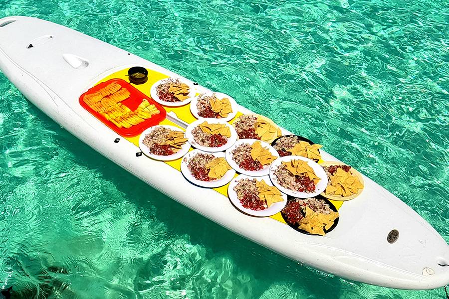 - Afterwards, the boat will take you to your final destination, where you will spend the rest of your time on a beautiful sandbank known as “El Cielito”. Here you can relax, the water is shallow so that you can sit on the sand. Ceviche, fruits and ice-cold refreshments like beer, Margaritas and rum punch, sodas and water will be served by the crew.