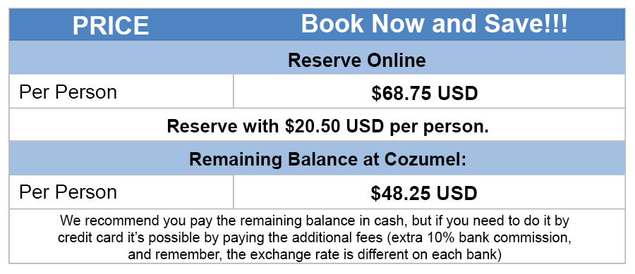- It is important to be aware that the remaining balance will be charged at the meeting point (preferably in cash). Credit cards may be used, but you will have to pay the added 10% bank commission.