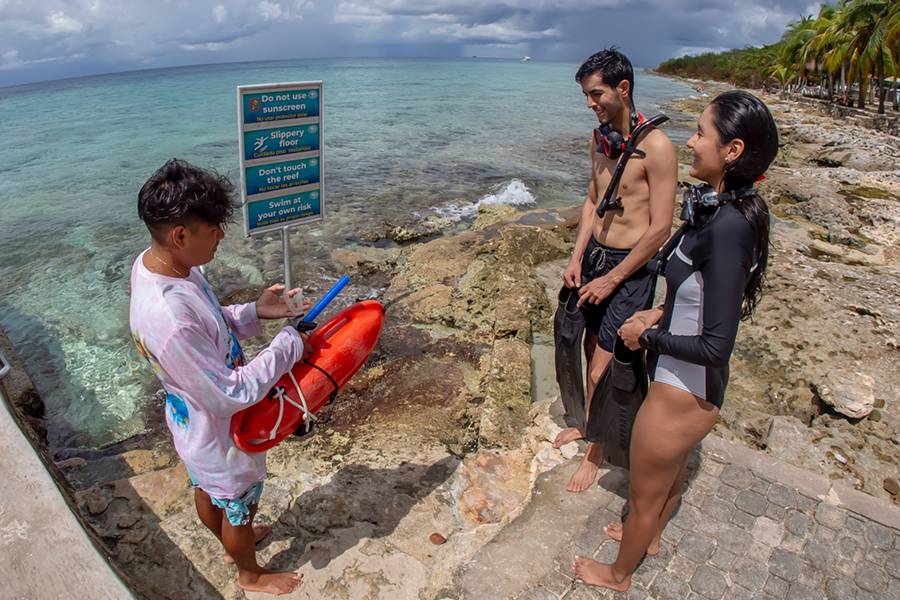 - IMPORTANT: We are committed to protecting the ocean environment and the Mesoamerican Barrier reef; therefore, the use of any type of sunscreen, sunblock, or suntan lotion which could eventually make its way into the ocean is no longer allowed. We suggest the use of long-sleeved UV-filtering shirts, hats, and sunglasses to protect yourself from the sun. Coral, fish, and all other sea creatures thank you for your cooperation!