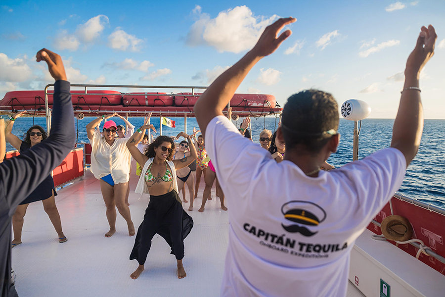 - You’ll hop back on board and begin the journey towards “El Cielito”. This will take 20 minutes. At El Cielito, you’ll be asked to step off the boat and float in the crystal-clear waters, while the crew sets the meals in each respective seat. While you swim, try staying close to the floating bar and enjoy some cool beverages.