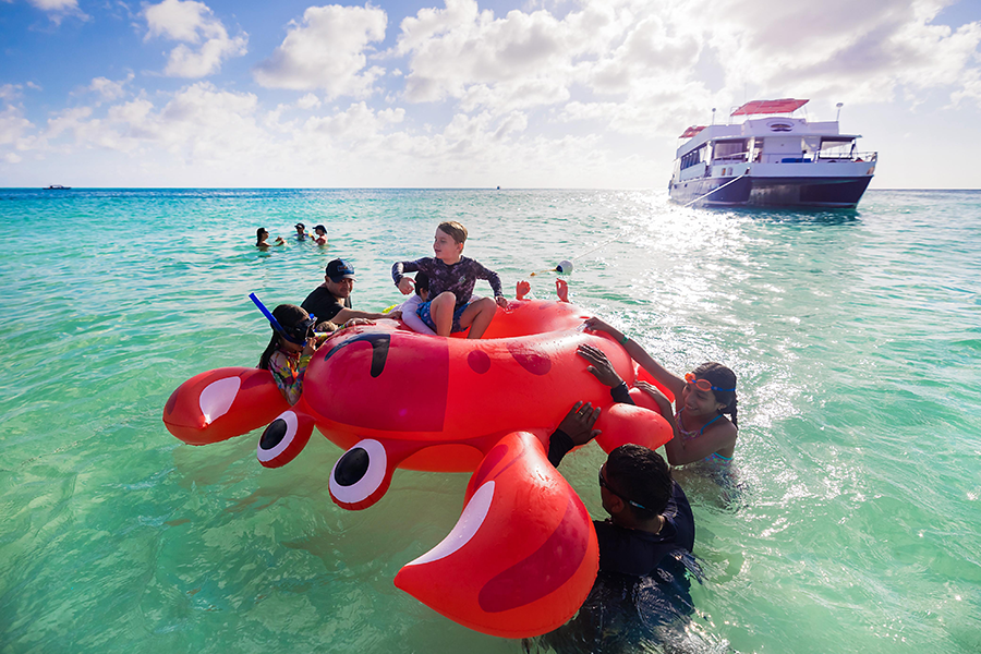 When you arrive at the last destination, enjoy the delicious meal the crew has prepared for you sitting comfortably at your table and lounge at sea requesting drinks from the floating bar serving margaritas, beer, and sodas.