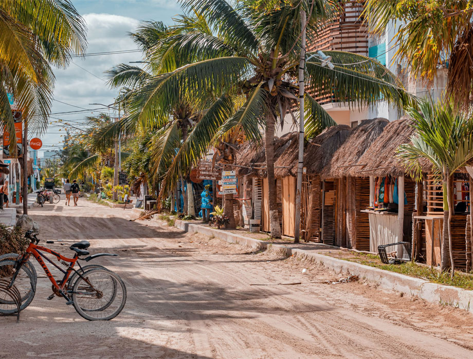 La isla de Holbox (hoyo en Maya) se encuentra a 10 km. de la costa, por la laguna Yalahow frente al poblado de Chiquilá. Tiene 10 km. de largo x 2 de ancho.