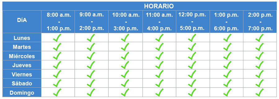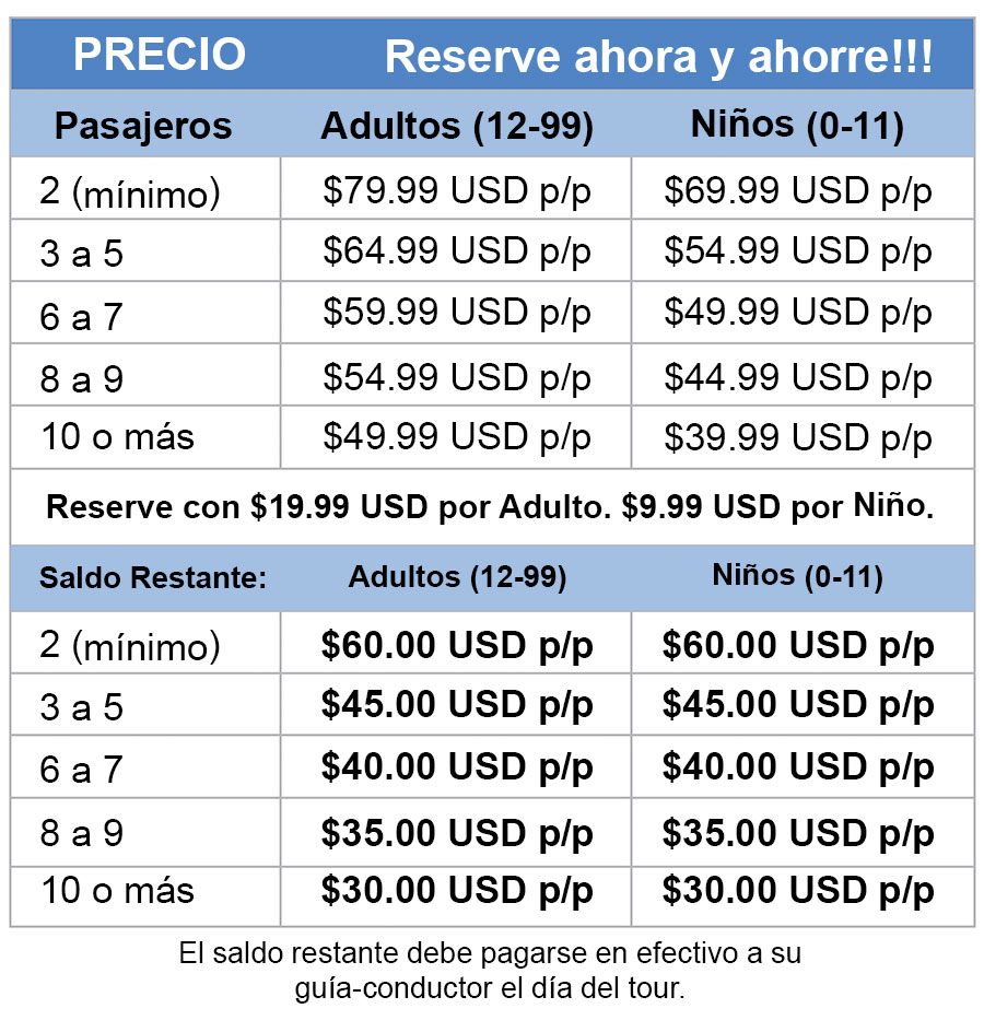 - Para pasajeros de crucero: Todas las reservaciones están basadas en el HORARIO LOCAL, que no siempre es el mismo de su crucero, por favor tome en cuenta esto, cuando haga su reservación.