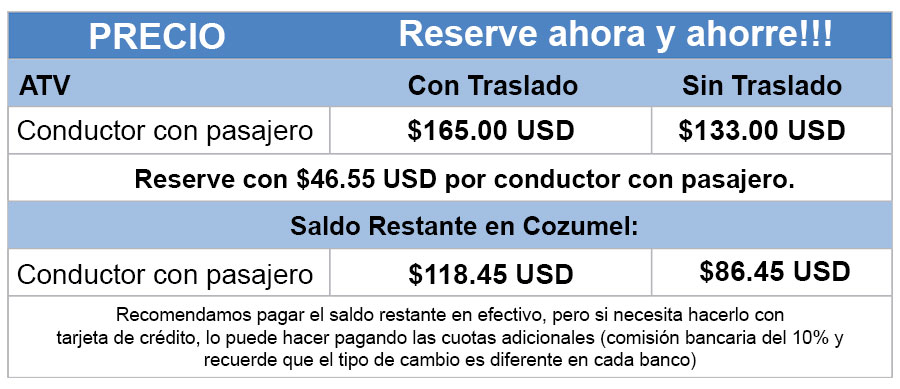Empiece su aventura explorando tesoros en el corazón de la jungla de Cozumel subiéndose en su ATV. Continúen con la diversión mientras conduce a través de una antigua Cueva Maya de Coral. Es un viaje salvaje, así que prepárense para ensuciarse.