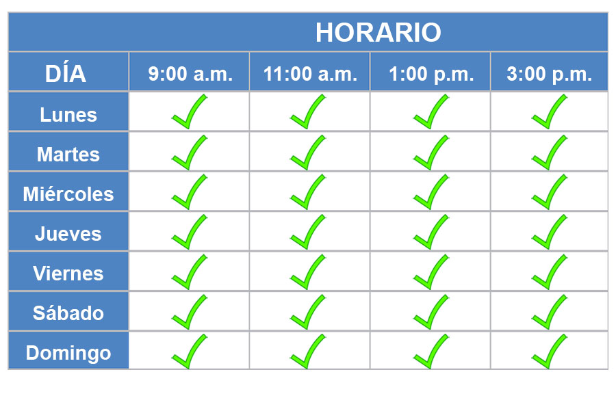 Hora de encuentro: 30 minutos antes de la hora de su tour/traslado en cualquiera de los puntos de encuentro.