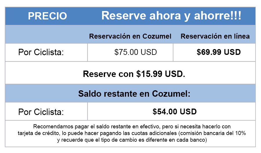 - IMPORTANTE: Estamos comprometidos con la protección del medio ambiente marino y los vastos arrecifes de coral de Cozumel; por lo tanto, ya no se permite el uso de cualquier tipo de protector solar, bloqueador solar o loción bronceadora que eventualmente pueda llegar al océano. Sugerimos el uso de camisas de manga larga con filtro UV, sombreros y anteojos de sol para protegerse del sol. Corales, peces y todas las demás criaturas marinas, ¡agradecen por tu cooperación!