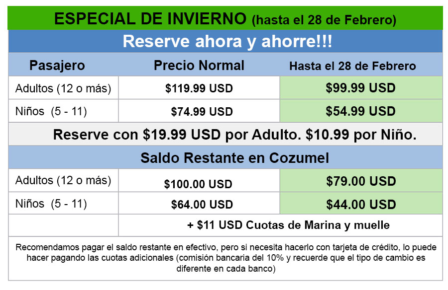 ❌ 11 USD de tarifa marina (Parque Marino) en efectivo y por pasajero