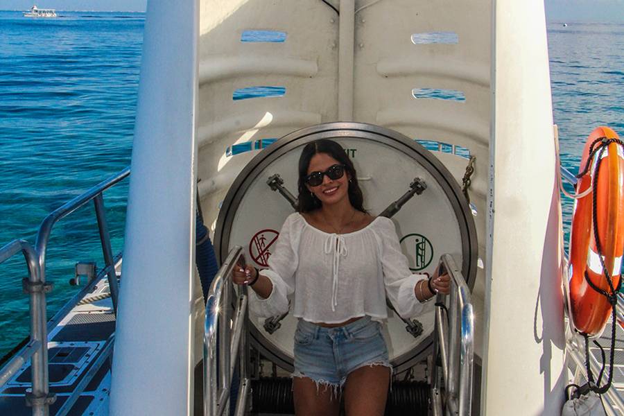 - Después del trayecto hacia el submarino, es hora de cambiar de barco, bajar por la escotilla y comenzar el descenso. El viaje submarino dura unos 45 minutos.